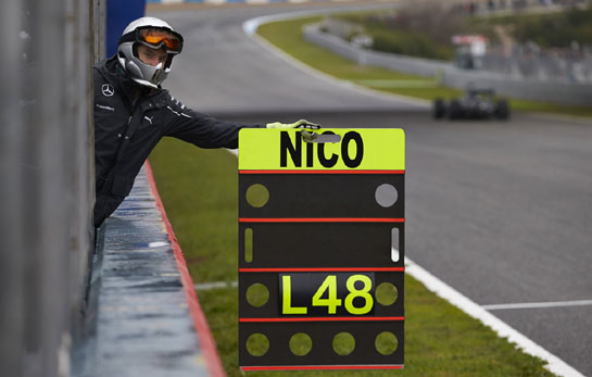 Niciuna dintre cele 10 echipe prezente la Jerez nu a acordat atenţie performanţei monopostului, întrucât fiabilitatea a fost cuvântul cel mai des întâlnit pe buzele inginerilor, lucru perfect de înţeles în contextul unui regulament schimbat radical. Din acest punct de vedere, Mercedes s-a descurcat fără îndoială cel mai bine, atât în privinţa echipei de uzină, cât şi în calitate de furnizor de motoare.Echipa a parcurs nu mai puţin de 309 tururi, echivalentul a 1368 de kilometri, şi este singura care a avut curajul să încerce şi să reuşească să efectueze o simulare de cursă, atunci când Nico Rosberg a parcurs 91 de tururi în a doua zi. De asemenea, cu cele patru echipe pe care le motorizează, constructorul german a parcurs 875 de tururi, de aproape două ori mai mult decât rivalii de la Ferrari, care au mizat însă pe numai trei echipe, dintre care Marussia a sosit cu întârziere.