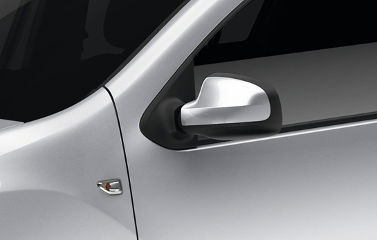 Spre deosebire de vechiul Logan, oglinzile laterale ale noii generaţii sunt prinse acum într-un plastic care continuă zona vitrată a geamului lateral. Anterior, aceasta era montată direct pe caroserie.