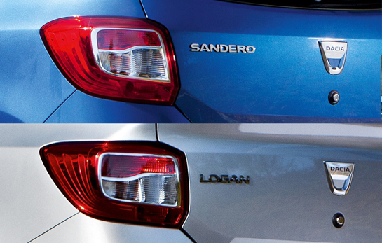 Comunicatul oficial Dacia anunţă că noile Logan şi Sandero "marchează introducerea unor noi tuşe de design, mai apăsate şi care amplifică statusul celor două modele". Această nouă identitate vizuală este determinată de "linii frontale armonioase împărţite de ambele modele". Detaliile despre exteriorul modelului care va fi produs în continuare la Mioveni nu se opresc aici, Dacia susţinând că, din profil, noile modele vin cu "proporţii armonioase între panourilor caroseriei şi suprafeţele vitrate", element care "întăreşte impresia de robusteţe sugerată de linia centrală sculptată, de bosajele mai proeminente ale roţilor şi de flancurile apăsate, repere ale întregii game noi Dacia".