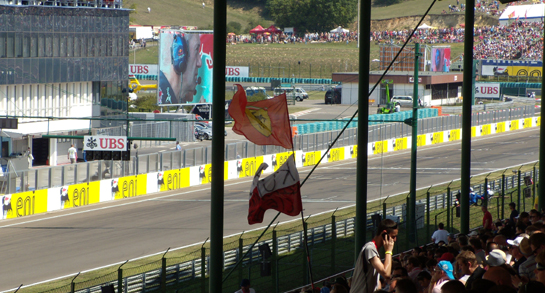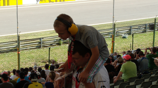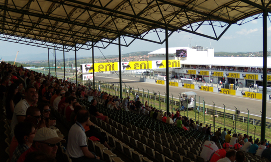 Urmează câteva momente de acalmie şi profit de ocazie pentru a arunca o privire asupra tribunei Gold. Este ocupată în proporţie de 60-70%, iar mulţi fani poartă semnele Scuderiei Ferrari: tricouri, şepci şi steaguri, nimic nu lipseşte din arsenalul lor, nici măcar un banner de încurajare pentru Robert Kubica.