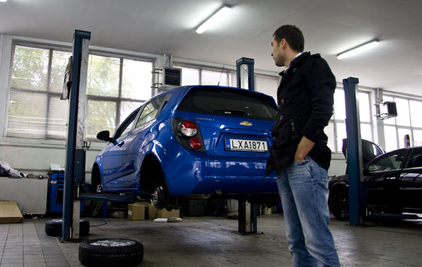 O vizită la service este sinonimă de multe ori cu o excursie într-o lume paralelă. Oameni diferiţi, comunicare diferită, un decor mai puţin obişnuit, văzut prin geamul sălii de aşteptare. Am mers cu Aveo la pantofar şi vegheat îndeaproape încălţarea maşinii cu un set de pneuri Hakook i*cept RS, cu dimensiuni de 195/65 R15. Am păstrat jantele de aliaj cu care maşina a venit echipată din fabrică, deşi ar fi fost indicat să montăm pneurile pe un alt set de jante, din tablă, pentru a evita deteriorarea lor.