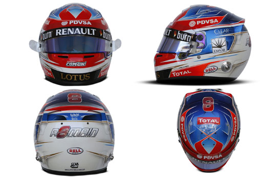 Romain Grosjean a adoptat o schimbare semnificativă pentru culorile căştii, care este acum roş-albastră.