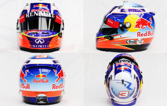 Daniel Ricciardo a apelat la o paletă de culori mai diversificată, în care se remarcă albastrul, roşul de pe marginile frontale sau culoarea deschisă de pe partea superioară, care permite afişarea proeminentă a numărului.