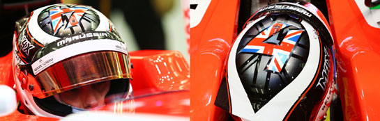 Max Chilton şi-a ales numărul patru pentru monopost, care a fost inscripţionat pe partea superioară a căştii împreună cu steagul Marii Britanii.