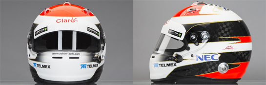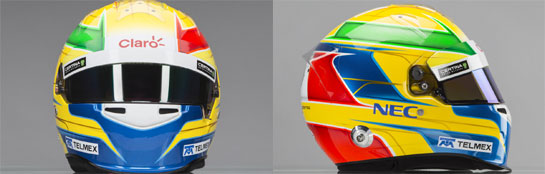 Plecat de la McLaren după un singur sezon, Sergio Perez a adoptat culori mai vii pentru cască, iar pe partea din spate a inclus câteva desene interesante, plus numele său de familiei şi iniţialele SP.