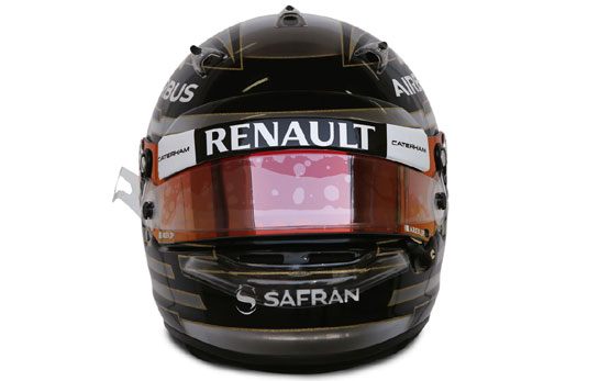 Deloc surprinzător, mexicanul Esteban Gutierrez preferă să abordeze sezonul 2014 cu o cască în culori vii: predominant galbenă, dar cu inserţii de roşu şi verde.
