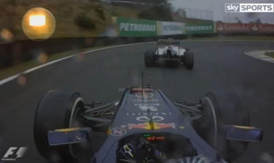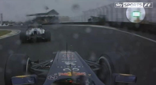 Imaginile difuzate de postul britanic de televiziune SkySports arată că pe finalul turului de pistă pe marginea circuitului erau aprinse LED-urile galbene, dar în acelaşi timp erau fluturate şi steagurile galben-roşu, care avertizează piloţii să conducă prudent din cauza pistei alunecoase. În acel moment, Vettel era chiar în spatele lui Kobayashi şi pregătea atacul.