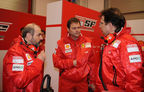 Inginerii Scuderiei Ferrari studiaza cauzele problemelor mecanice intampinate de noul monopost F60 la debutul pe pista de la Mugello.