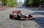 Jenson Button a efectuat marţi o demonstraţie de Formula 1 pe străzile din Budapesta în cadrul unui eveniment organizat de sponsorul Vodafone.