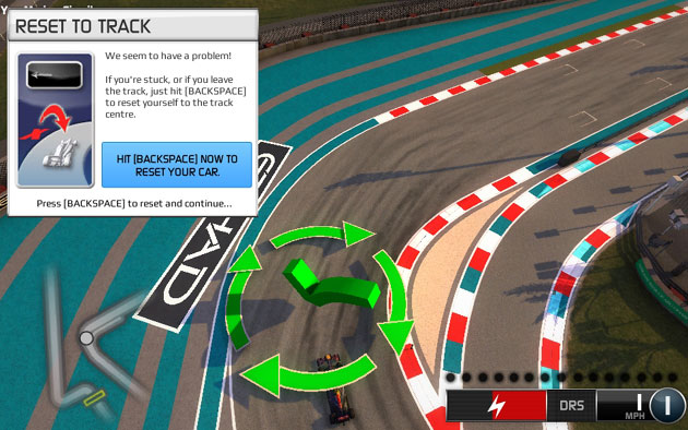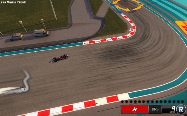 Pentru început, noi am ales să concurăm cu Sebastian Vettel la volanul unui monopost Red Bull Racing pe circuitul Yas Marina din Abu Dhabi, însă după stingerea luminor roşii am avut parte de o mare surpriză: controlul monopostului se realizează în special prin intermediul mouse-ului şi mai puţin cu ajutorul tastaturii.