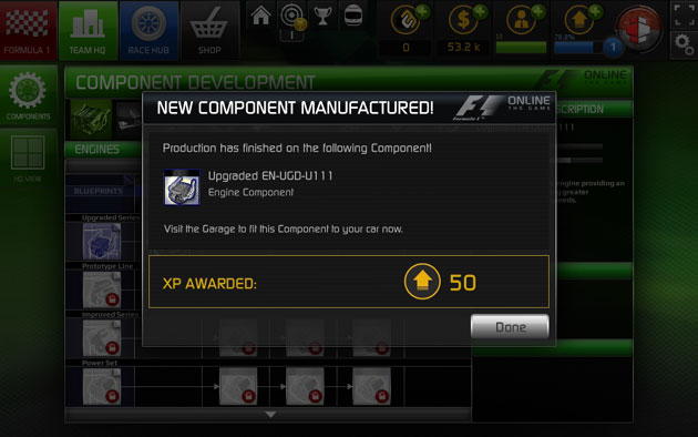 Aici încep lucrurile cu adevărat interesante: trebuie să te ocupi de tot ceea ce înseamnă dezvoltarea echipei şi monoposturilor, prin introducerea de noi componente înaintea fiecărei curse. Poţi încerca un update pentru motor, poţi utiliza o nouă aripă faţă, poţi schimba sistemul de evacuare pentru îmbunătăţirea forţei de apăsare aerodinamică. Numărul de componente disponibile este suficient de mare pentru a nu deveni repetitiv şi pentru a nu te plictisi, însă pentru a le accesa vei avea nevoie de bani.