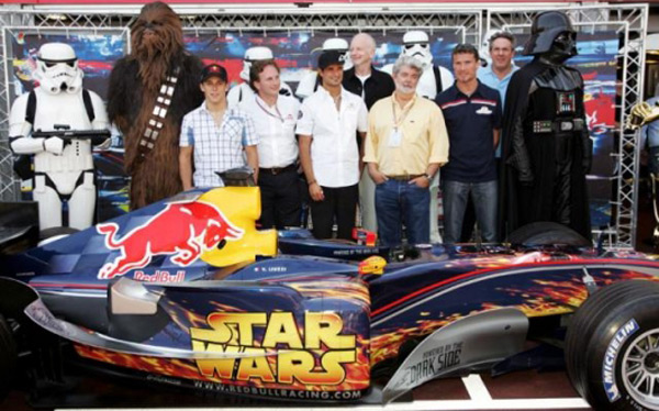 Una dintre cele mai interesante modificări în schema de culori a unei echipe s-a petrecut la Marele Premiu al statului Monaco din 2005. Red Bull Racing a decis să promoveze lansarea ultimului film Star Wars într-un mod inedit: a inscripţionat logo-ul Star Wars pe părţile laterale ale caroseriei şi pe aripa spate. Dar asta nu este tot: mecanicii au fost echipaţi în costumele folosite de armata de clone a republicii din acelaşi film, marcând una dintre cele mai spectaculoase apariţii din Formula 1.