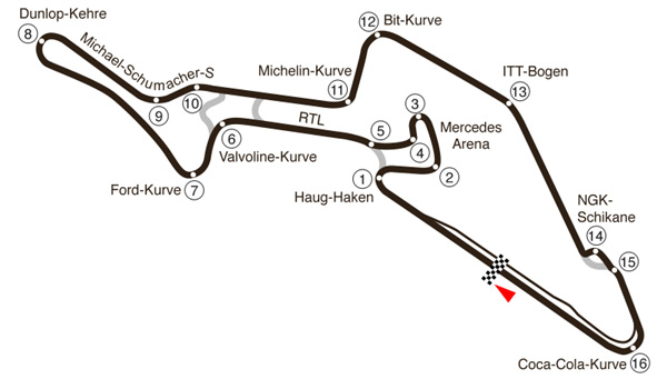 "Nurburgring reprezintă întotdeauna o provocare, de obicei din cauza vremii, care este deseori ameninţătoare, indiferent de perioada anului în care are loc cursa. Zona DRS a fost stabilită pentru linia dreaptă ce precede şicana, aşa că ar trebui să vedem câteva depăşiri bune. Întotdeauna există acţiune bună în primul viraj: este frumos şi lat, cu multe traiectorii posibile, ceea ce oferă piloţilor oportunitatea de a depăşi", a precizat britanicul.