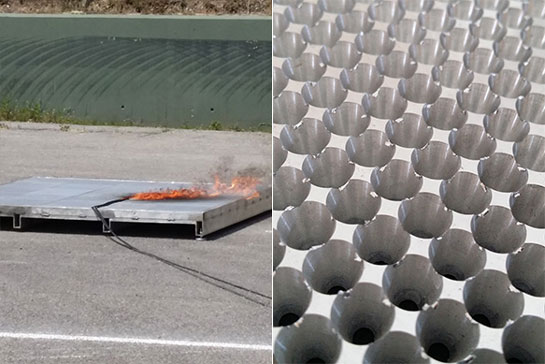 Acesta este alcătuit din mai multe plăci suprapuse deasupra cărora este amplasat un panou cu găuri care are rolul de a atrage combustibilul. În acest fel, intensitatea flăcărilor este semnificativ redusă, iar fumul este aspirat în totalitate, în timp ce temperatura incendiului este de numai 93 de grade, spre deosebire de cele 315 grade înregistrate de obicei la incendii.