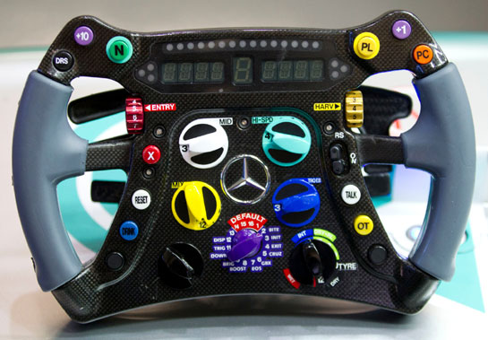 "Volanul era înecat de butoane, aşa că le-am eliminat pe toate cele pe care nu le folosesc niciodată. Apoi am mutat în faţă butoanele importante pentru a fi mai vizibile. La Mercedes sunt 26 de butoane pe volan şi am eliminat deja şase. Deja mă gândesc la volanul pentru 2014, pentru că vor fi noi funcţii. Îmi plac astfel de detalii", a adăugat el.
