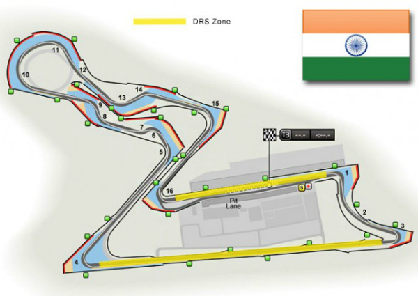 În cazul în care nformatiile vor fi confirmate oficial de FIA, India va deveni doar a doua cursă de Formula 1 din acest sezon în care piloţii au la dispoziţie două zone de depăşire pentru sistemul DRS. Prima oară, această regulă a fost implementată cu ocazia Marelui Premiu al Italiei, întrucât circuitul de la Monza are mai multe linii drepte de mare viteză.