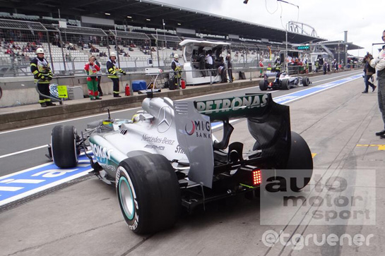 Echipa germana a incercat acest sistem pe monopostul lui Nico Rosberg, in timp ce Lewis Hamilton a participat la antrenamente cu aripa fata in configuratie standard. In functie de rezultatele obtinute, Mercedes ar putea decide sa foloseasca sistemul DDRS in calificarile si cursa de la Nurburgring, insa acest lucru este destul de putin probabil.