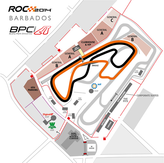 Astfel, Race of Champions 2014 se va desfăşura pe circuitul Bushy Park din Barbados, o insulă situată în Caraibe, aproape de America de Sud, a cărei suprafaţă este de aproape două ori mai mare decât a Bucureştiului. Potrivit organizatorilor, Barbados s-a numărat printre destinaţiile favorite ale fanilor în cadrul unui sondaj realizat pe reţelele de socializare Facebook şi Twitter.