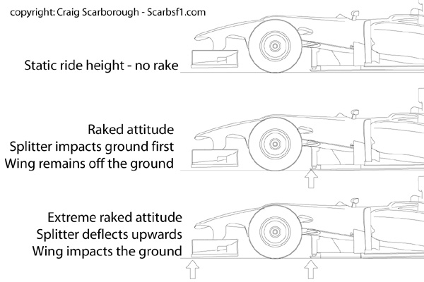 Jurnalistul independent Craig Scarborough a realizat o ilustraţie grafică a celor trei situaţii posibile pentru înălţimea aripii faţă a unui monopost în funcţie de inclinarea părţii din spate: