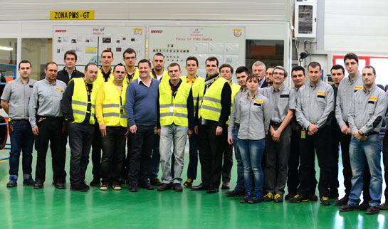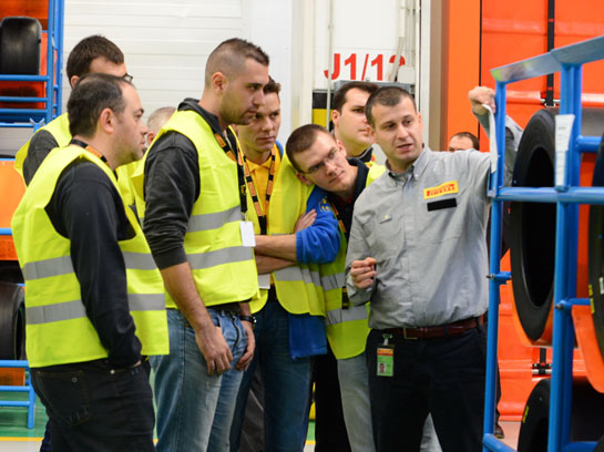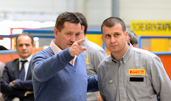 Ajungem în sfârşit la destinaţie: secţia unde se construiesc cauciucurile pentru sporturile cu motor, acolo unde, ni se şopteşte în ureche, accesul este puternic restricţionat chiar şi pentru angajaţi.Înainte să ne povestească câteva lucruri inedite despre pneurile de competiţie, Hembery îi salută pe toţi muncitorii prezenţi la faţa locului şi schimbă câteva vorbe cu aceştia.