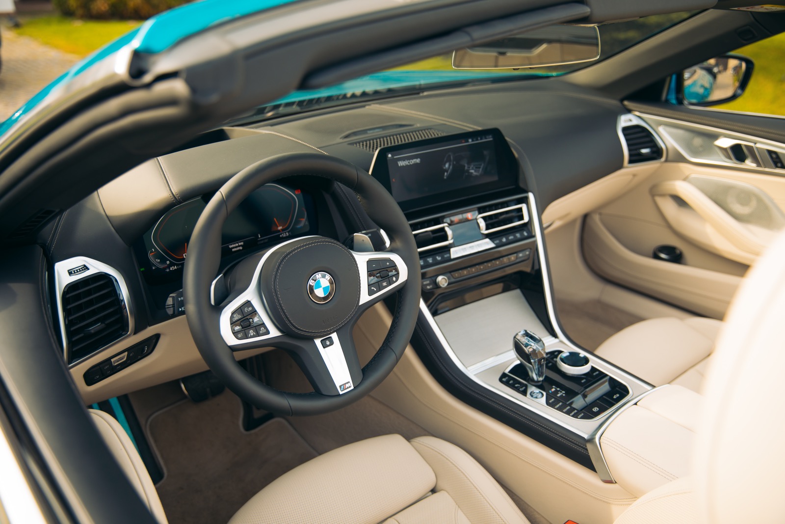Dacă nu te lași înduioșat de formele lui Seria 8 Cabriolet, atunci poate interiorul o să te convingă: ai un sistem audio Bowers & Wilkins Diamond, tapițerie Merino în nuanța Ivory White din paleta BMW Individual și ornamentele Crafted Clarity.Dar Seria 8 Cabriolet nu e doar despre astfel de detalii. E despre libertatea pe care ți-o oferă, despre sunetul unui V8 pe care îl poți simți în moalele capului atunci când accelerezi cu sete sau despre reprizele în forță livrate fără mult efort.