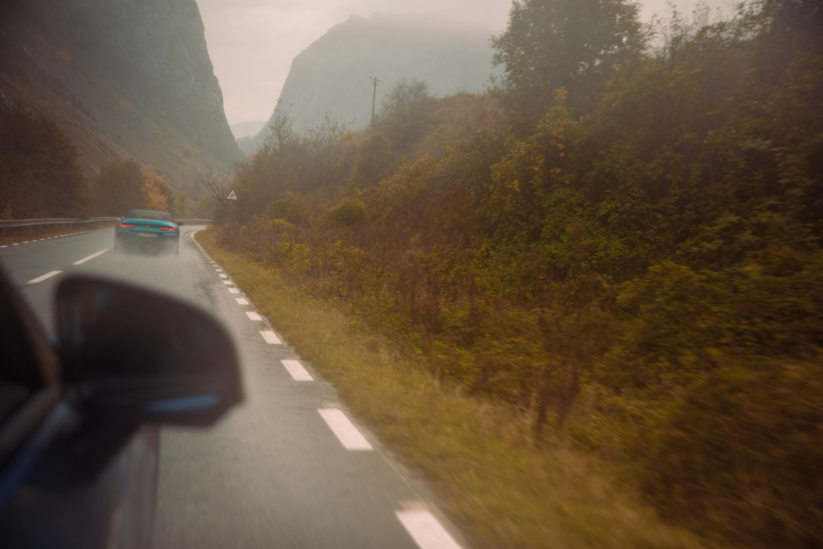 A patra zi din Romanian Roads a fost și cea mai tristă din punct de vedere al vremii de afară. Am pornit de dimineață pe ceață și o temperatură mai mică decât până acum, iar în scurt timp ne-a făcut și ploaia o vizită. Nu-i cel mai bun moment pentru un cabriolet, dar hei! Avem căciuli! Și oricum este un timp mai bun decât o caniculă de august. Așa că lăsați miturile deoparte, nu vara este "sezonul cabrioletelor".