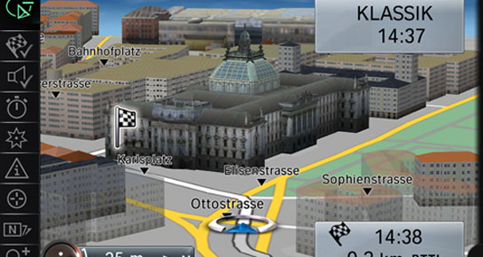 În cazul traseelor extraurbane ea intră în funcţiune cu 300 de metri înainte, în vreme ce în zonele urbane livrează indicaţii preţioase cu 150 de metri înainte de intersecţie. Mai mult, şoferul poate vedea tridimensional ce se află în jurul poziţiei sale pe hartă sau poate avea o imagine aeriană.