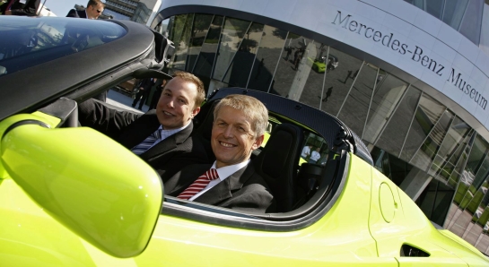 Daimler a achiziţionat în mai 2009 o cotă de 9.1 procente din acţiunile Tesla. În baza unui proiect strategic dezvoltat în iulie 2009 cu Aabar Investments PJSC, Daimler a transferat 40% din pachetul său de acţiuni Tesla către respectiva companie de investiţii.