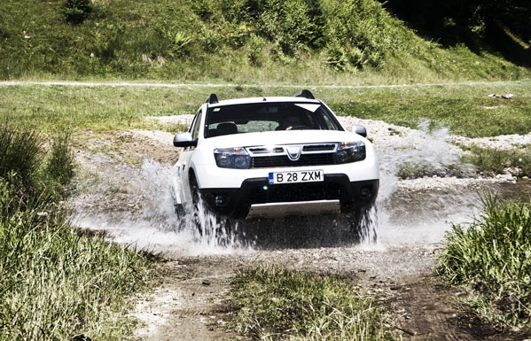 L-am supus pe Duster şi la o probă de scufundări. Am găsit un pârâiaş nu foarte adânc, unde adâncimea apei nu depăşea 30 de centimetri. Duster s-a aruncat fără probleme în apa rece de munte şi a înaintat cu tact printre bolovanii de la fund. Am cuplat tracţiunea integrală, dar cred că ne-am fi descurcat şi fără.