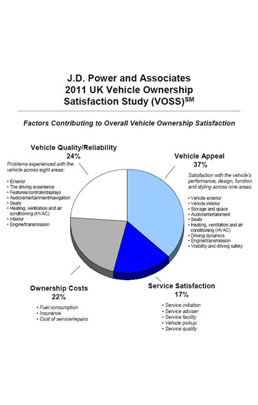 Clasamentul respectiv este realizat în funcţie de sondajele făcute de cei de la JD Power împreună cu What Car? şi evaluează 66 de atribute în patru categorii cheie. În ordinea importanţei, acestea sunt: atracţia vehiculului (37%), care include performanţele, design-ul, confortul şi echipamentele; calitatea vehiculului şi fiabilitatea (24%); costul de deţinere (22%), care include consumul de carburant, costurile de asigurare şi costurile reparaţiilor, iar ultima categorie este "satisfacţia serviciului oferit de dealer" (17%).