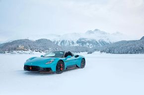 Acest lucru este evident la exterior, unde supercarul este „îmbrăcat” într-o vopsea exclusivă Ai Aqua Rainbow, cu un finisaj strălucitor. Aspectul își schimbă nuanțele în funcție de lumină, iar Maserati spune că este conceput pentru a evoca „suprafața cristalină” a ghețarilor.