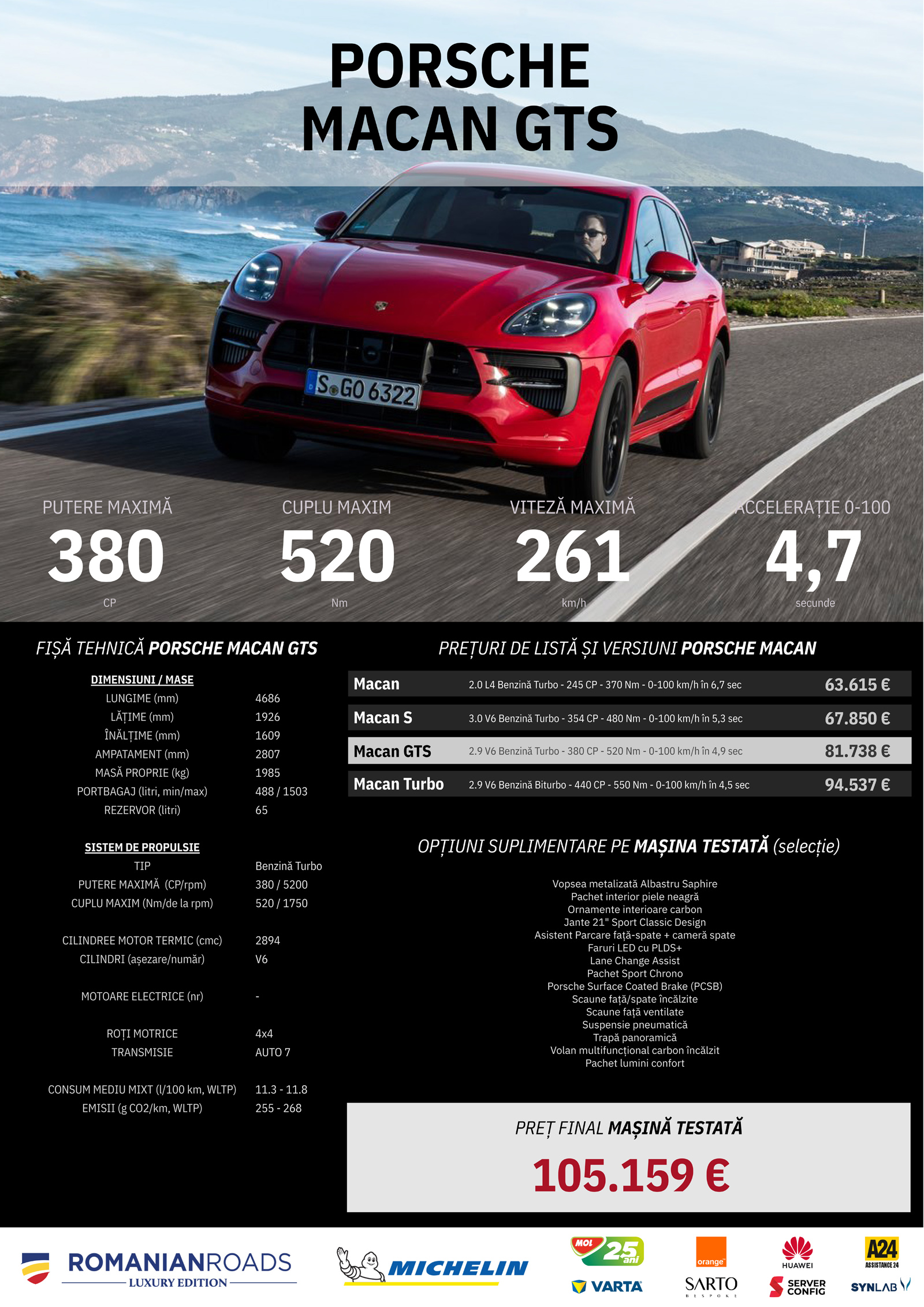 | Macan GTS | 380 | V6, 2.9 litri benzină | 81.738 | ||