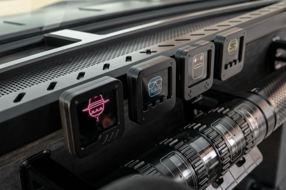 Un detaliu interesant este reprezentat de oglinzile laterale. Acestea integrează lumini LED și dublează ca proiectoare. Oglinzile sunt detașabile și pot funcționa ca lanterne. Mai mult, unul dintre punctele de tractare montate în barele de protecție poate fi și acesta demontat pentru a servi drept desfăcător de sticle.