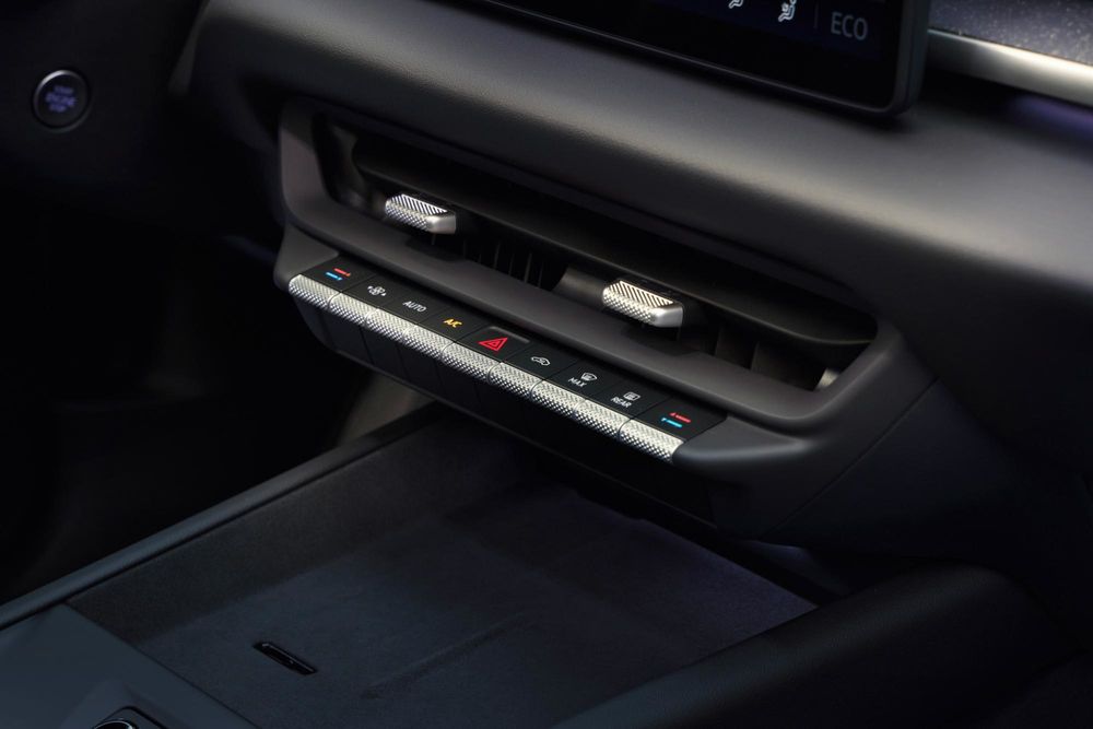 Butoane fizice avem și în partea centrală a bordului, imediat sub aeratoare. Aici sunt prezente comenzi fizice doar pentru reglarea climei și pentru luminile de avarie. Astfel, dispare reglarea temperaturii prin glisarea unei suprafețe tactile.