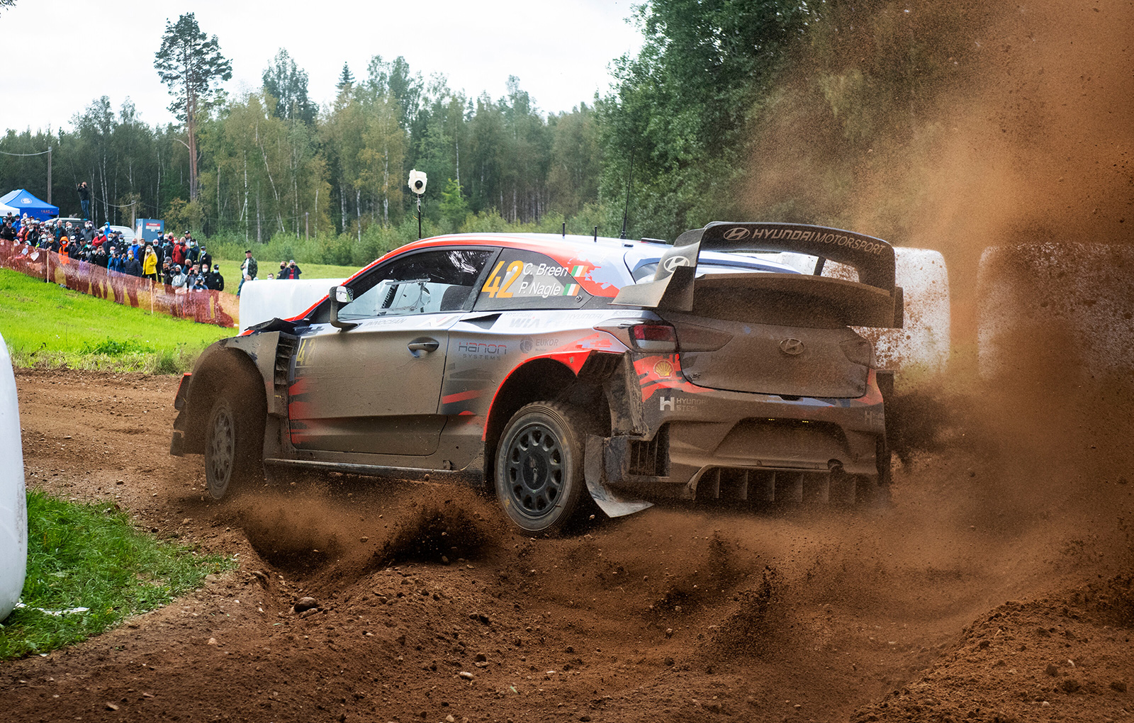Craig Breen a revenit în Mondialul de Raliuri la volanul unui Hyundai i20 WRC, iar pilotul irlandez a reușit să țină ritmul cu localnicul Tanak și să urce pe poziția a doua a clasamentului general provizoriu. După abandonul lui Neuville, Sebastien Ogier (Toyota) a urcat pe poziția a treia a clasamentului general provizoriu.