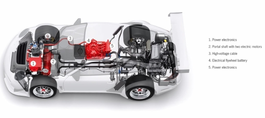 Apariţia unui Porsche 911 hibrid în următorii 15 ani nu este exclusă, spun reprezentanţii Porsche. Până atunci, singurul 911 hibrid creat vreodată este un prototip numit 911 GT3 R Hybrid, bazat pe versiunea de competiţie a lui Porsche 911 GT3. Respectivul model prezintă o volantă specială care capta eenrgia cinetică pierdută în mod normal la frâanre şi o elibera către puntea faţă în rafale a câte şase-opt secunde, controlate printr-un buton amplasat pe volan. Datorită sistemului hibrid, modelul livra aproximativ 161 Cp în plus prin intermediul a două motoare electrice, alimentate de energia electrică furnizată de volanta montată în locul banchetei din spate şi a scaunului din dreapta.Williams furnizeaza sistemul hibrid pentru Porsche 911 GT3 R Hybrid