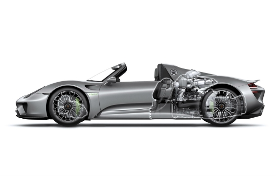 Configuraţia lui Porsche 918 Spyder este aşteptată să inspire următoarele generaţii de modele Porsche în ceea ce priveşte soluţiile tehnice aplicate.