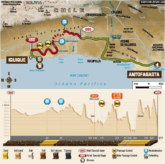 Cea de-a şasea probă specială din cadrul Raliului Dakar va avea loc vinerii pe un traseu competitiv de 277 de kilometri între localităţile chiliene Antofagasta şi Iquique.