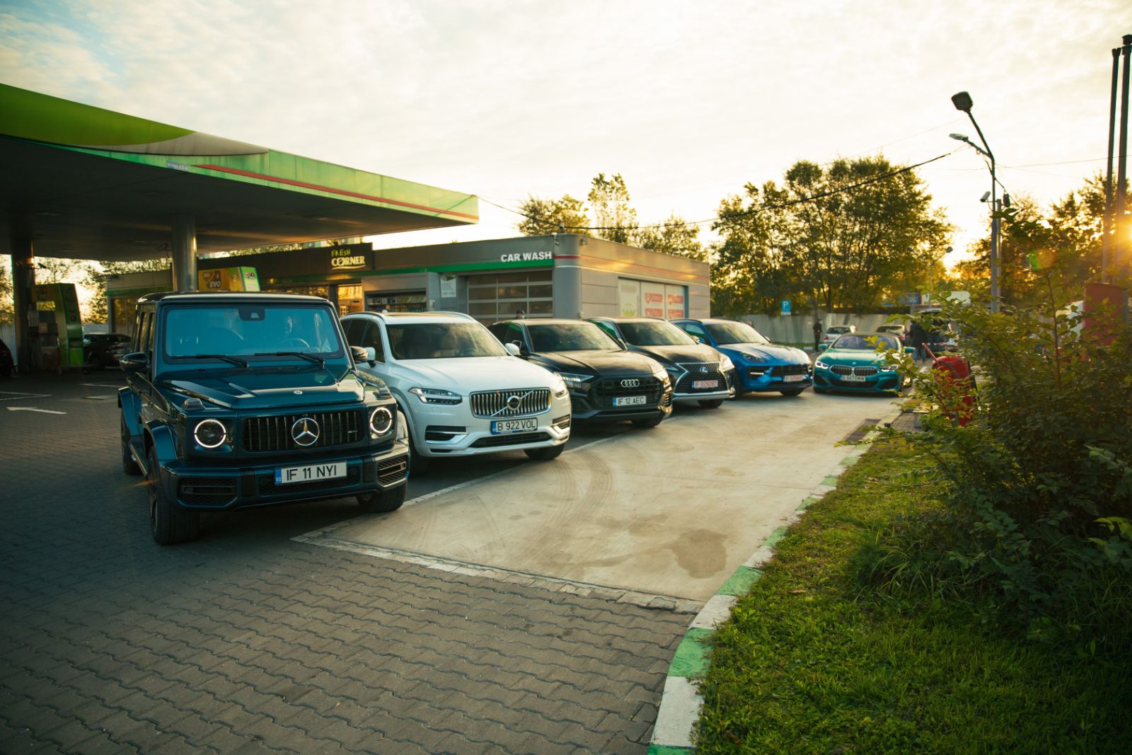 În prima zi de Romanian Roads Luxury Edition by Michelin noi am avut parte de amândouă. Adunarea s-a făcut în București, într-unul dintre punctele de energie pregătite de partenerii noștri Mol România. Am adăpat cei 2538 de cai putere (țineți minte numărul ăsta pentru că o să-l tot auziți vreme de 7 zile) cu benzină de cea mai bună calitate, iar apoi i-am țesălat frumos la spălătoria automată. Noi ne-am făcut plinul cu câte un hot-dog și o cafea și duși am fost.