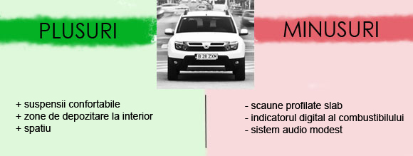 Noroc cu garda la sol ridicată şi cu suspensiile moi ale lui Duster. Pentru că o maşină de segment mic cu suspensii tari şi eventual cu garda la sol coborâtă ar putea avea probleme serioase pe podul care ne leagă de vecinii din sud.Diesel-ul de 110 cai putere de pe Duster este destul e spinten pentru ce ne-am obişnuit pe modelele mărcii româneşti şi se achită bine de sarcini la depăşiri în treptele 3 şi 4. Este însă cam zgomotos, izolarea fonică a habitaclului nefiind chiar un punct forte al lui Duster. Ne-am mulţumit să acoperim zgomotul cu muzică prin sistemul audio standard pe modelul românesc, unul mediu din punctul de vedere al calităţii sunetului.