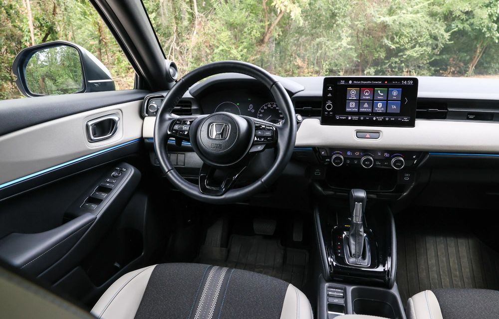 Asta înseamnă că motorul electric e cel care se va ocupa de pus în mișcare roțile față ale lui HR-V. Totuși, la nevoie propulsorul termic poate pune umărul la treabă, trimițând putere către roți.