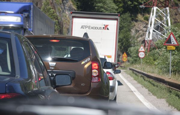 Drumul spre Sibiu, presărat cu TIR-uri şi semafoare