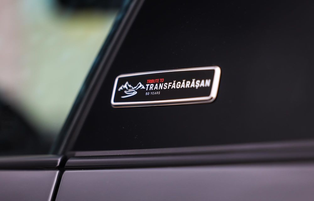 Și acum, elementele comune. Pe portiere regăsim un autocolant cu logo-ul Tribute to Transfăgărășan, pe montantul B avem o emblemă specială, iar pe capota motorului se poate observa tricolorul țării noastre.