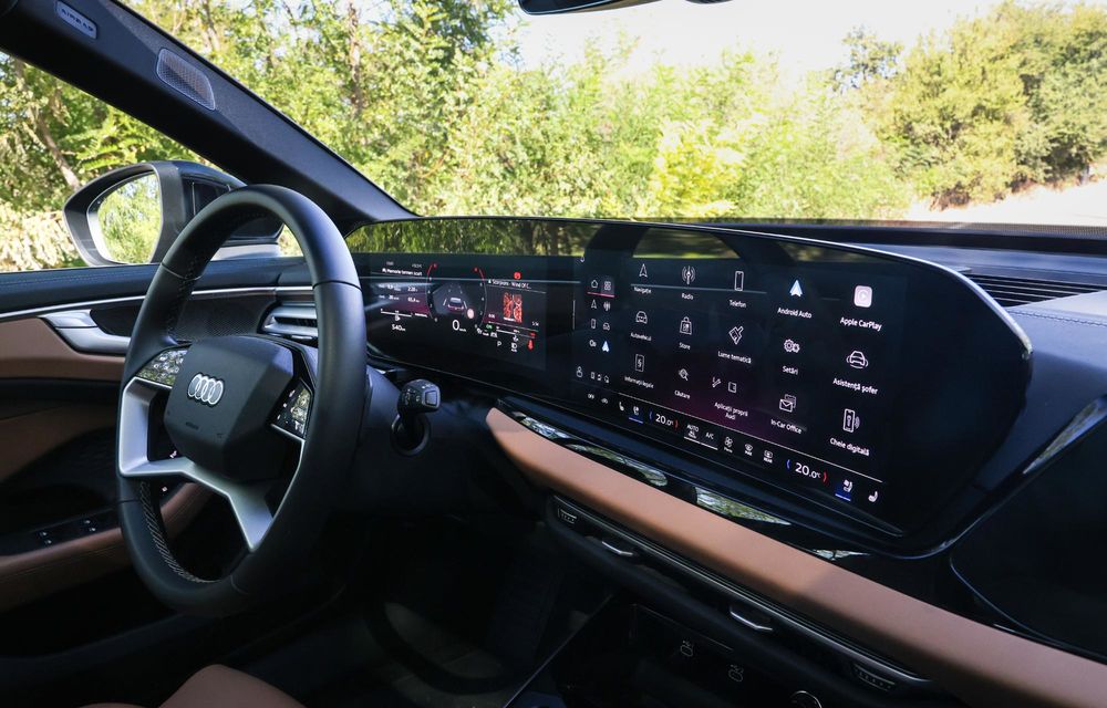 Tot tehnologie OLED are și display-ul panoramic Audi MMI, care integrează instrumentarul digital Audi Virtual Cockpit de 11.9 inch, dar și ecranul central MMI Touch de 14.5 inch pentru sistemul multimedia. Ambele au o grafică foarte bună și îți dau impresia de calitate.