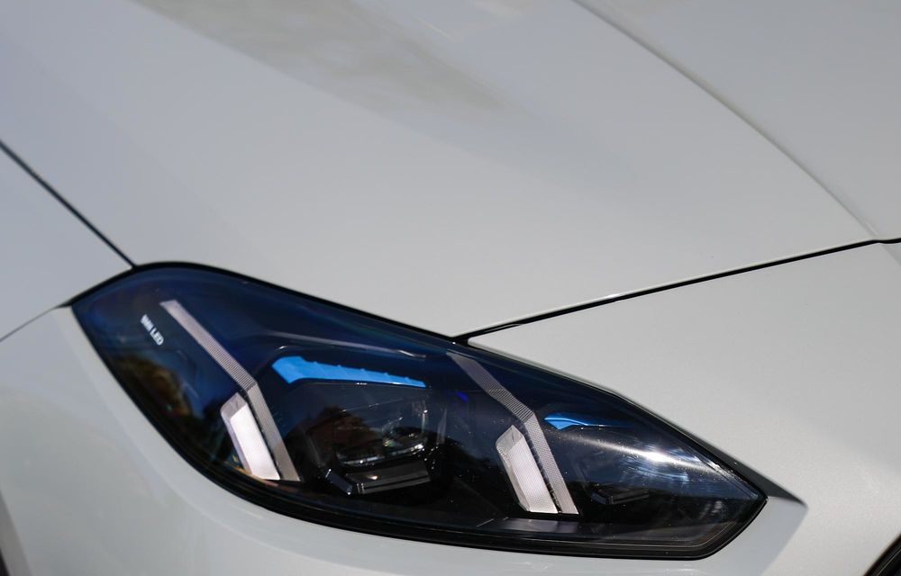 Opțional, clienții pot opta pentru un set de faruri LED cu tehnologie Matrix și accente interioare albastre, cum a avut și mașina testată de noi.