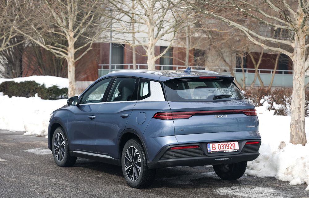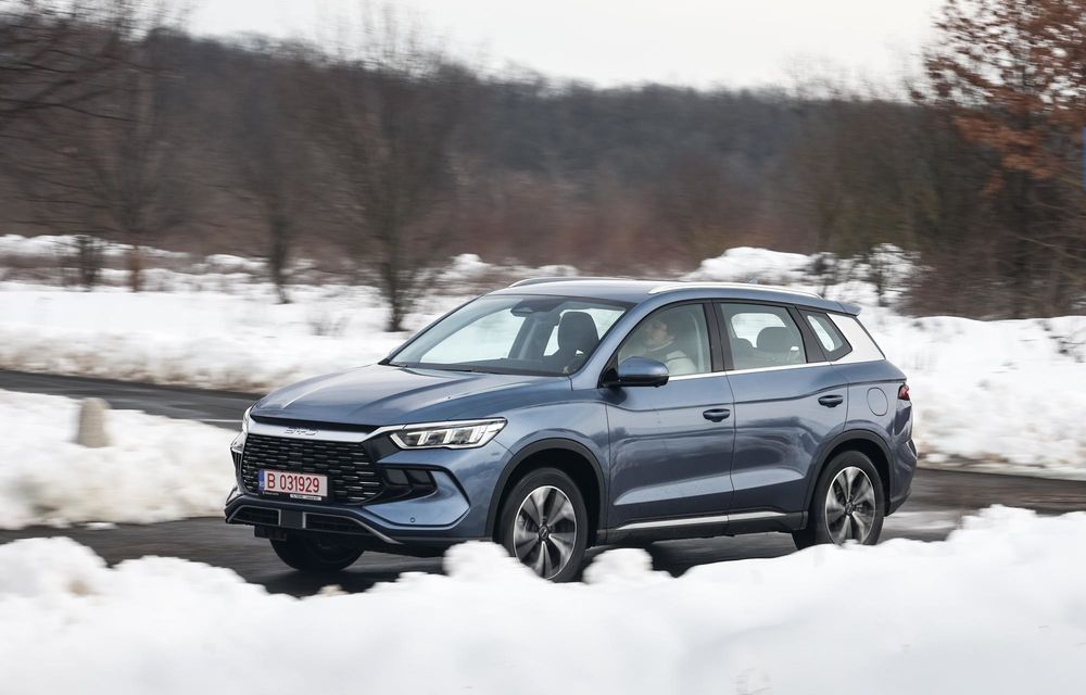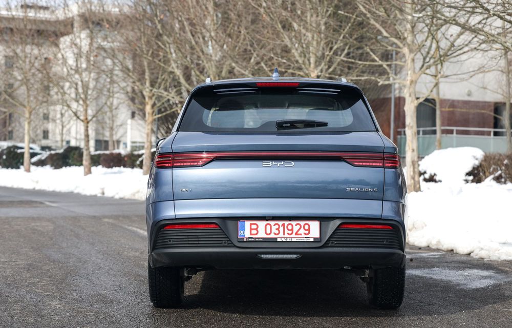 Am testat această mașină exact în săptămâna în care toată țara a fost cuprinsă de ninsori abundente. Din această cauză, unele drumuri naționale au fost închise, iar asfaltul s-a deteriorat considerabil, astfel că nu am avut posibilitatea de a testa limitele lui BYD Sealion 5 DM-i în viraje.