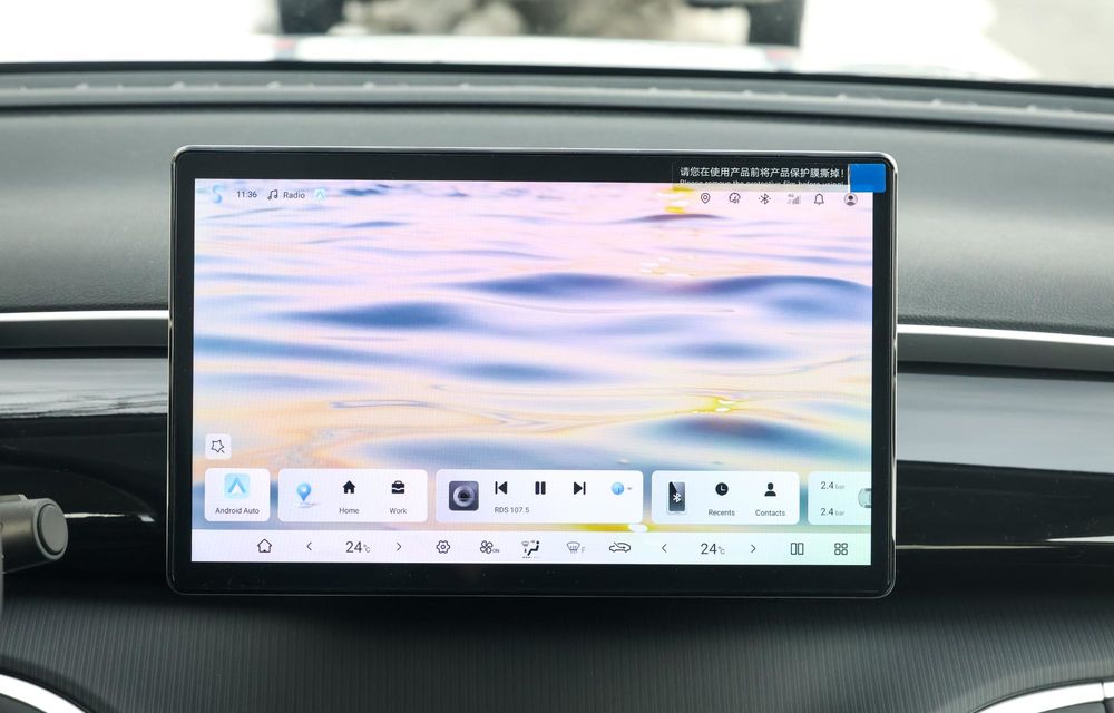 Un lucru care m-a surprins, neplăcut, la BYD Sealion 5 DM-i este radioul. Acesta nu te lasă să reglezi manual frecvența, astfel că vei rămâne doar cu anumite posturi de radio detectate de mașină. Ce am apreciat, în schimb, este că pe afișajul principal ai o bară pe care o poți personaliza cu widget-uri diferite pentru acces mai rapid.