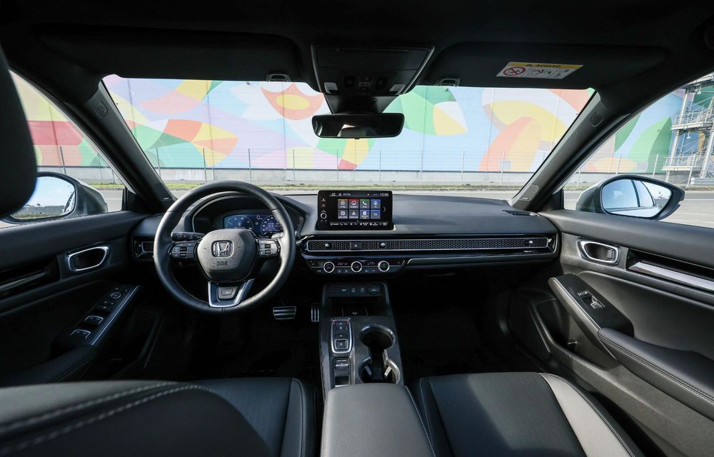 Volanul, cu funcție de încălzire în standard dacă bifezi nivelul de echipare Sport, se simte foarte bine în mâini. Scaunele primesc și ele laude, atât pentru confort cât și pentru poziția coborâtă. Te simți ca într-un Civic Type R, dar mai confortabil și mai cuminte.