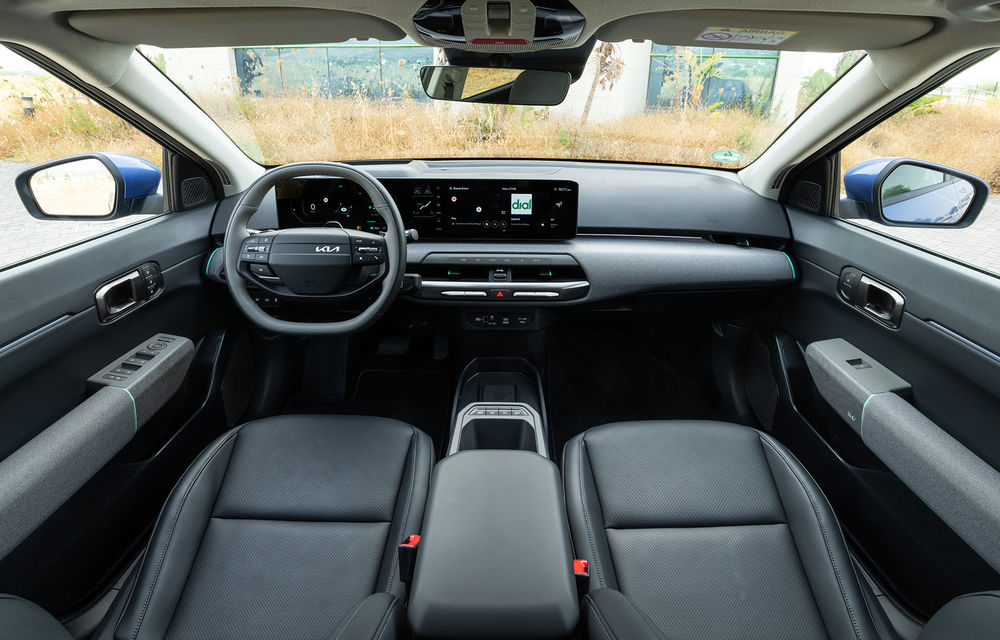 Deși pierde câteva puncte la capitolul ergonomie, câștigă puncte la capitolul spații de depozitare. Buzunarele portierelor sunt suficient de încăpătoare, dar piesa de rezistență este, fără îndoială, tunelul central. Pentru că vorbim despre o mașină electrică, Kia și-a permis să nu instaleze o cotieră centrală convențională.