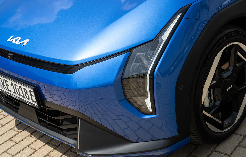 Limbajul de design Opposite United a fost aplicat și celui mai nou model al familiei EV de la Kia. Avem faruri și stopuri verticale, accente negre în spoilerul frontal (nivel de bază) și vopsite în culoarea caroseriei pe GT Line, protecții din plastic cu finisaj mat la nivelul aripilor sau cu finisaj lucios pe GT Line, dar și o inserție neagră în montantul C.